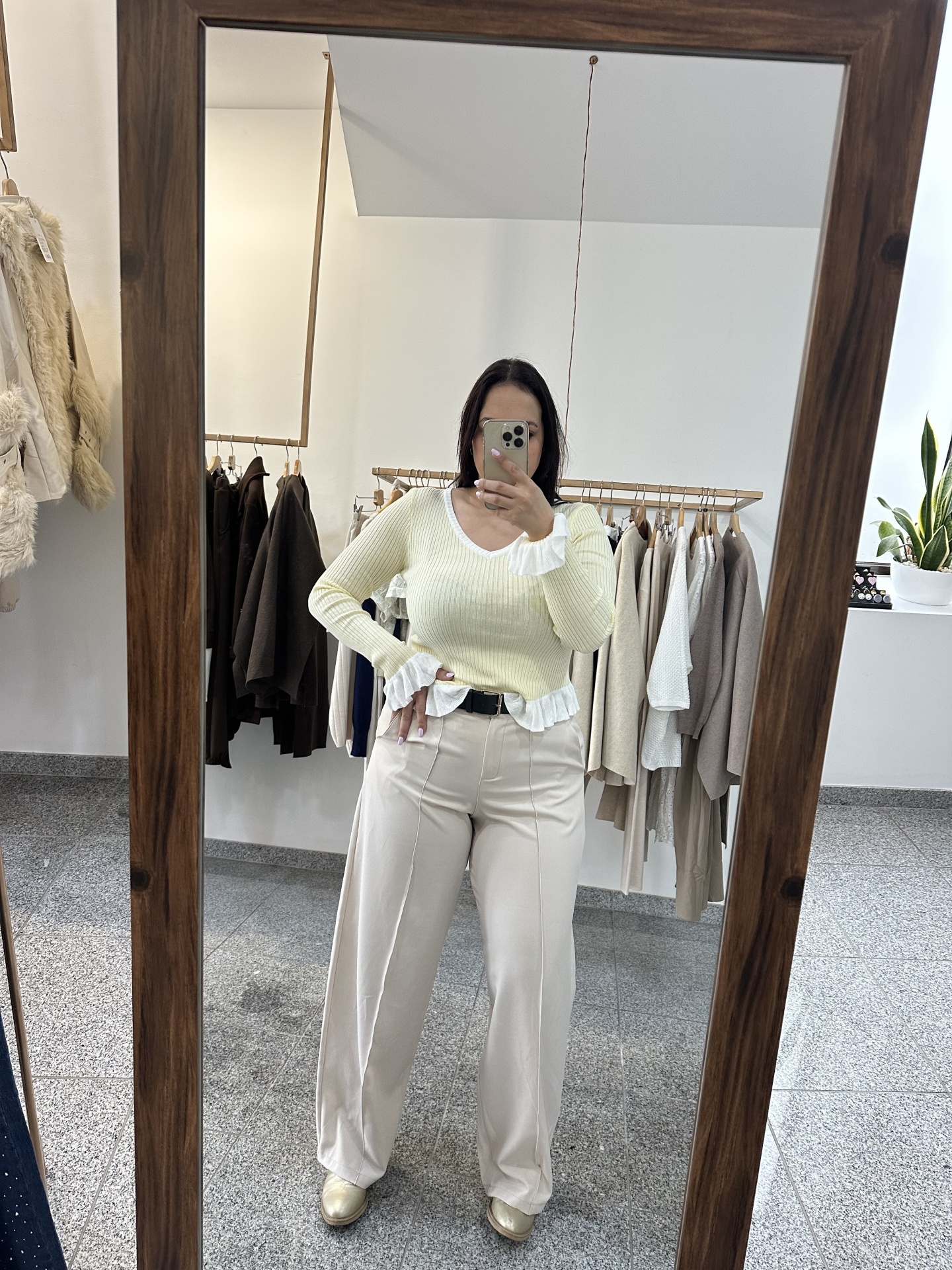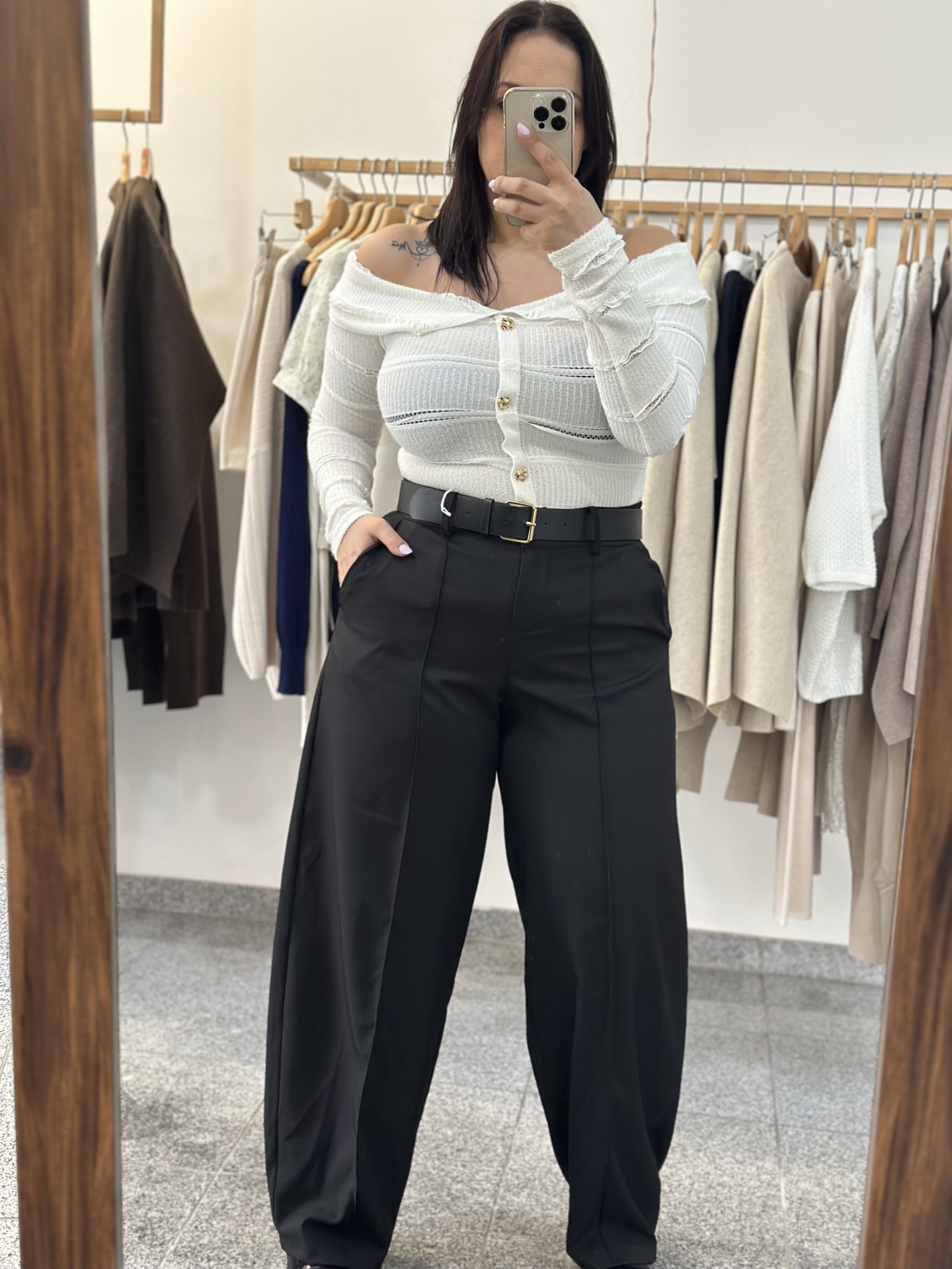 Calça Aline 16,00 € Desconto de %. Partilhar Cor Bege Preto Azul Tamanho TU Comprar Contactar Veste até tamanho 40 Marca Trevo Store